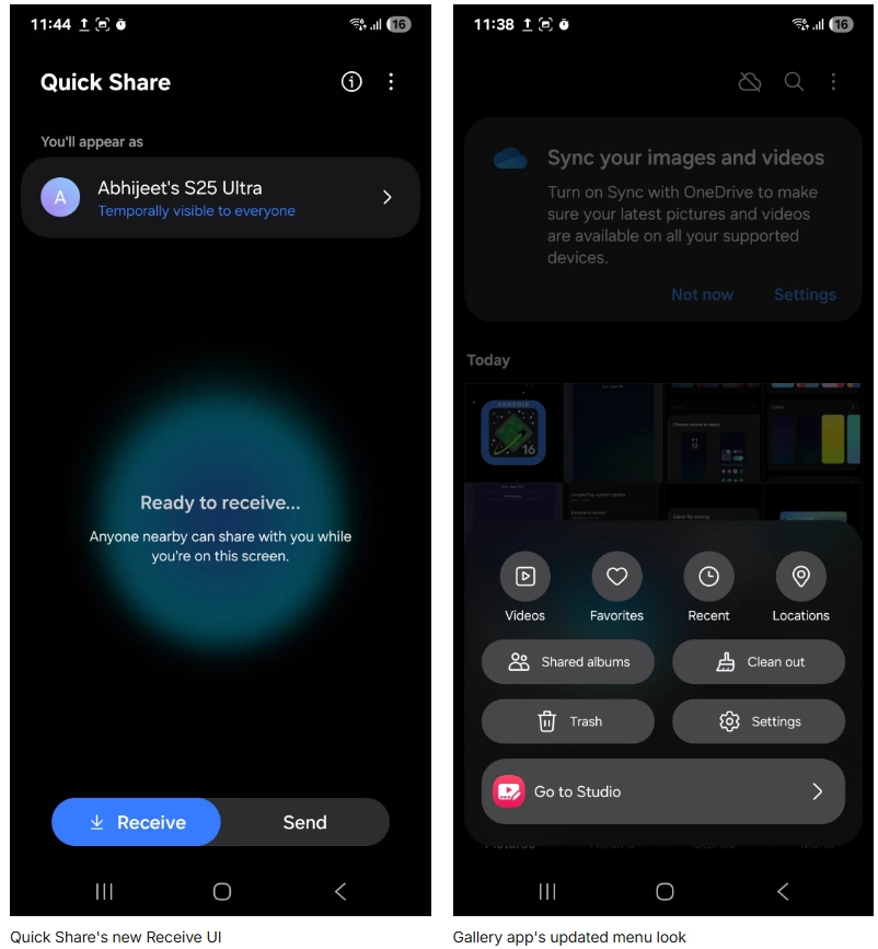在功能方面,Quick Share 新增“Receive”选项,用户可设置手机为可发现状态,方便从其他设备接收文件,操作更灵活。IT之家附上截图如下: